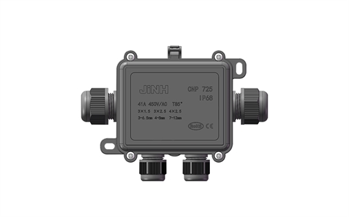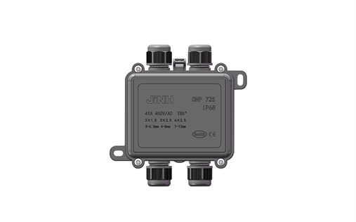 CNP725系列防水盒防水等級IP68,接線平方數(shù)范圍在0.5-4mm2,產(chǎn)品使用只需擰開兩邊防水接頭,插入導線,用防水盒里面的端子將兩邊的導線連接完成,蓋上防水盒蓋板,用螺絲擰緊,最后將兩邊接頭按順時針擰緊即可,可用于戶外設(shè)備電纜電線連接,高鐵、大橋、輪船等各種戶外場景使用。